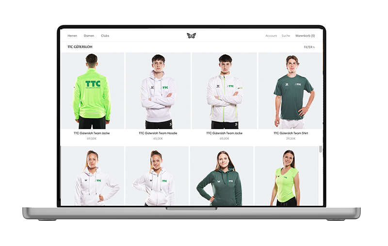 Zeige deine Verbundenheit zum Verein – mit offizieller TTC Gütersloh Bekleidung und Accessoires.